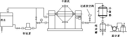 • 物料處于真空狀態(tài),蒸汽壓下降使物料表面的水份(溶劑)達(dá)到飽和狀態(tài)而蒸發(fā)了,并由真空泵及時排出回收。物料內(nèi)部的水份(溶劑 )不斷地向表面滲透、蒸發(fā)、排出,三個過程不斷進(jìn)行,物料在很短時間內(nèi)達(dá)到干燥目的。